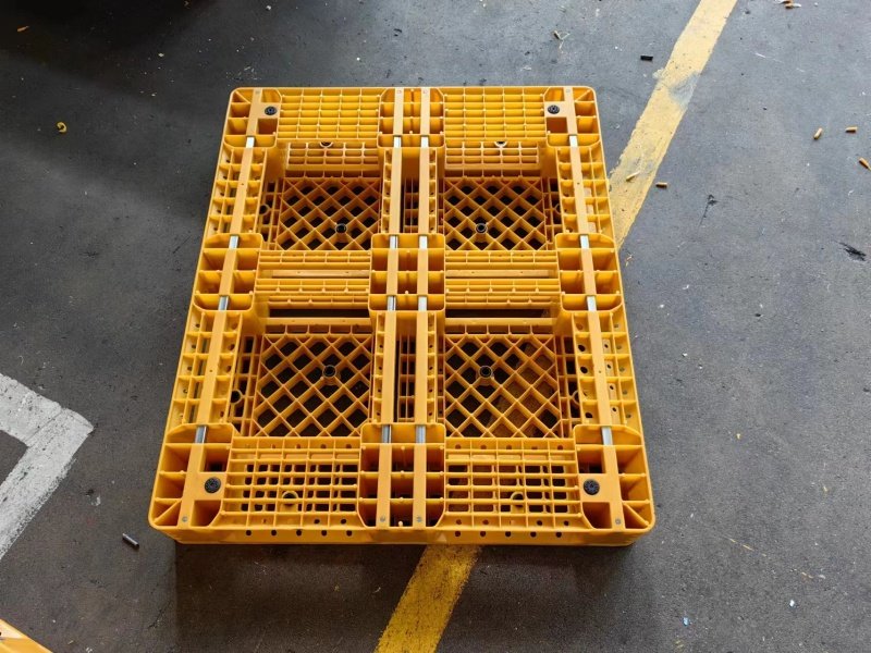 All full-perimeter pallets are injection-molded using dedicated steel tooling with ±0.5mm dimensional tolerance. Integrated steel tube slots and multi-rib runner reinforcements ensure minimal deflection under 1,500–2,000kg rack loads. Batch consistency is validated through corner load tests and digital runner depth inspection across every lot.